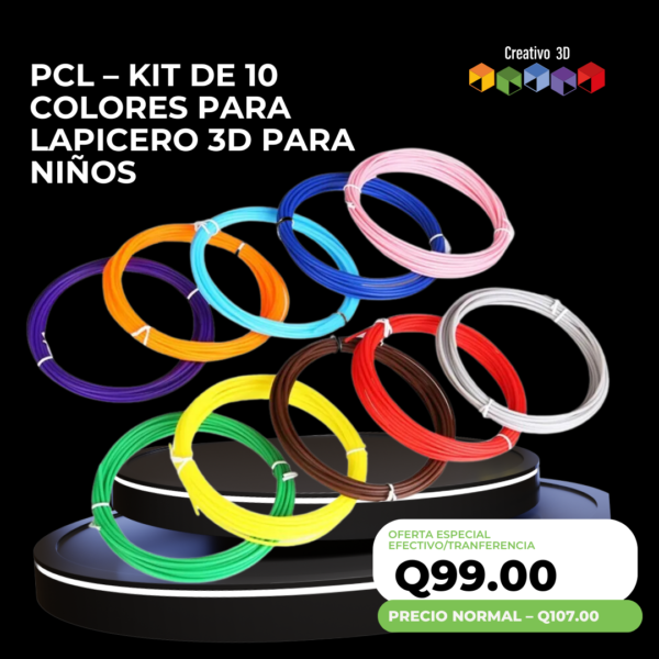 PCL – KIT DE 10 COLORES PARA LAPICERO 3D PARA NIÑOS