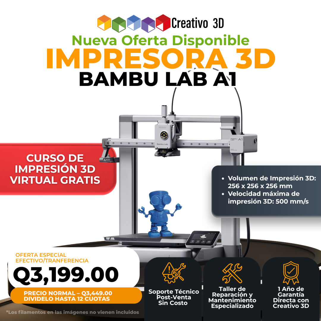 Lleva tus ideas a la realidad con la impresora Bambu Lab A1, una máquina de alta precisión, velocidad excepcional y rendimiento industrial en un diseño compacto para el usuario moderno. Esta versión está optimizada para impresión monocolor y no incluye el sistema AMS Lite, enfocándose en una experiencia de usuario más directa, sencilla y eficiente.