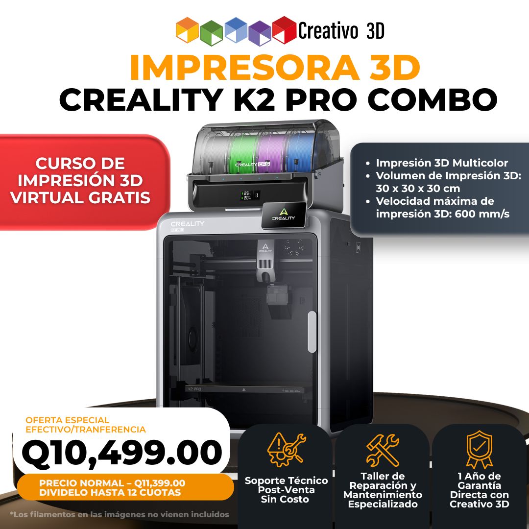 En Creativo 3D Guatemala, la Creality K2 Pro Combo es una impresora de nivel industrial, diseñada para quienes buscan rendimiento, escalabilidad y resultados profesionales reales.