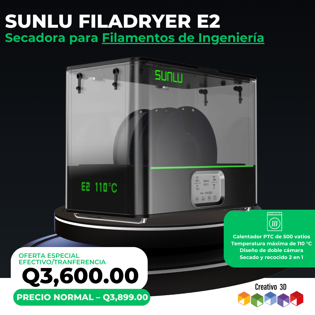 El SUNLU FilaDryer E2 es la herramienta definitiva para quienes trabajan con materiales de ingeniería y buscan máximo rendimiento en impresión 3D. No solo seca filamento: también permite realizar tratamientos térmicos (annealing) a temperaturas de hasta 110 °C, optimizando la resistencia, rigidez y durabilidad de tus piezas.
